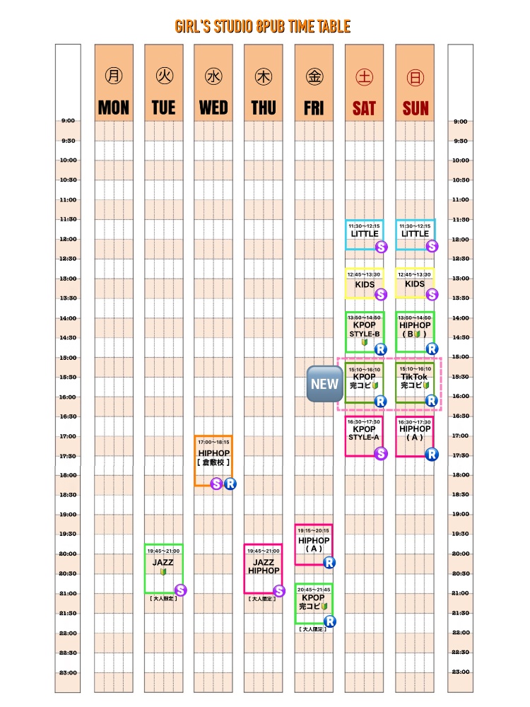 ※イベントへの出演依頼・スタジオ主催の発表会・年末年始等の際、スタジオレッスンが不定期で休講になる場合があります。